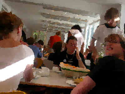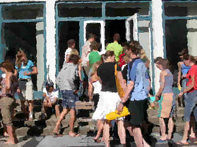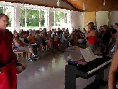 Jedes Jahr fahren die Musiker unsere Schule drei Tage weg, um in Ruhe und intensiv zu proben, vor allem für die Konzerte und sonstigen Veranstaltungen zum Schuljahresende. Das sind dann die vier Musiklehrer und knapp hundert Schüler aus Chor, Leistungskurs Musik, Big Band, Juniorband, Grundkurs Chor (in dem auch Klausur gesungen wurde), Streichquintett und was es sonst alles immer wieder mal gibt.