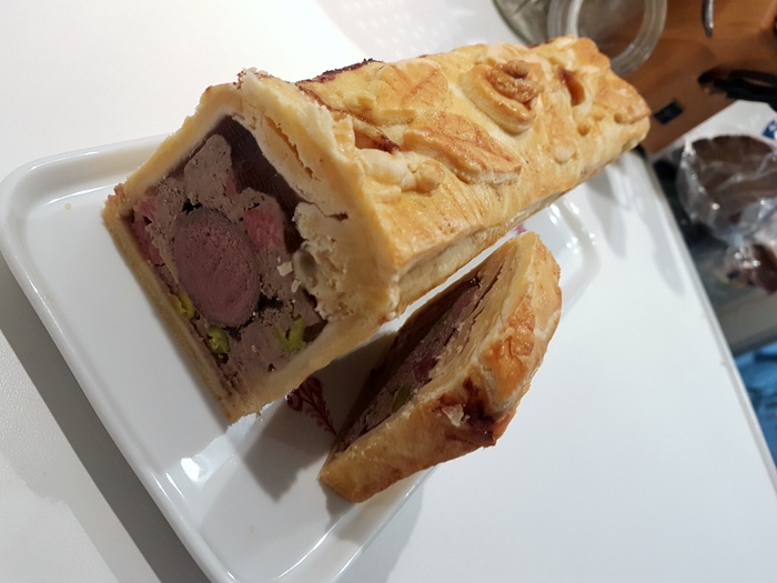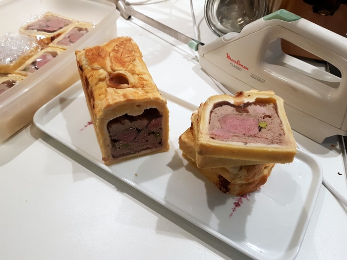 Ich wollte schon lange mal wieder diese Pastete machen, also zum Viktualienmarkt, groß einkaufen. Nebenbei auch Zicklein, zum Einfrieren – ich kaufe gerade so viel wie möglich, und gebe Trinkgeld, wo ich kann, auch im Supermarkt. Vom übrigen Teig und vom übrigen Fleisch habe ich dann noch ein paar Pies nach meinem Pork-Pie-Rezept gemacht.