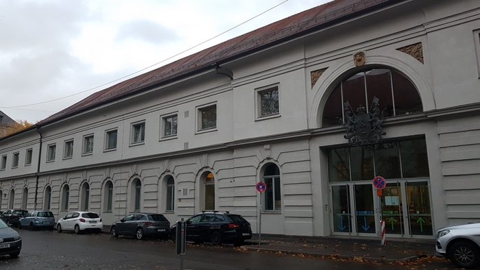Auf der anderen Straßenseite ist der Neubau (1808), eine ehemalige Mauthalle. Verbunden sind die beiden Gebäude durch einen unterirdischen Gang: