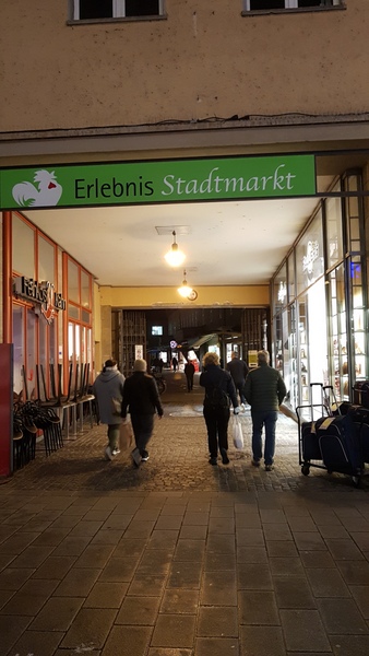 Da bin ich mit meiner Mutter als Kind gelegentlich hin, nicht oft, es war dann immer exotisch, und ich habe mich erst spät wohlgefühlt. Fisch kaufte man dort, und dann auch Fleisch in der Metzgerhalle, Eier, Gemüse. (Ich bin in einem südlichen Stadtteil auifgewachsen, zum Einkaufen fuhr man selten in die Innenstadt.) Zu Studienzeiten habe ich erst die Schönheit dieses Marktes entdeckt: draußen viele Stände, richtig groß, und zwei große Hallen für Fleisch und Feinkost. In der Feinkosthalle war ich auch. Den Pferdemetzger gibt es nicht mehr, aber bei genau dem Stand an dem ich mit Frau Rau Schüsselchen voller Knoblauchcrememischung kaufte, noch mit demselben Besitzer hinter der Theke, kaufte ich ein Schüsselchen zum Mitnehmen.