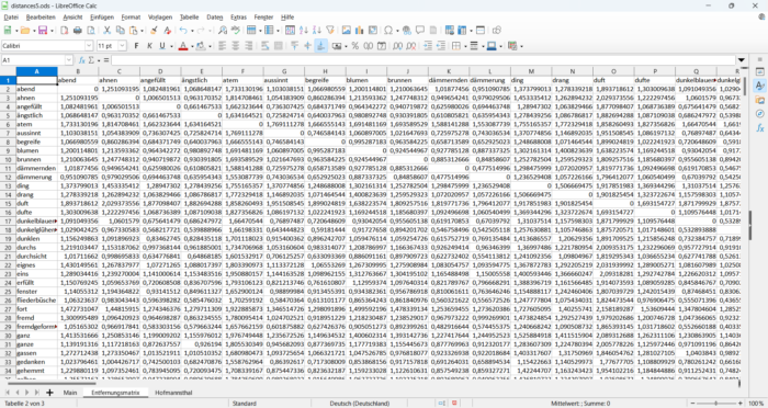 (Der ganze Aufwand nur, um die Werte für die Wörter aus zwei Hofmannsthal-Gedichten zu kriegen. Das geht sicher auch einfacher, aber ich kann mir so auch noch andere Aspekte der Texte anzeigen lassen.)