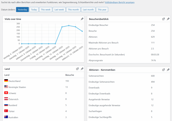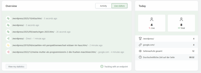 Ich habe mich lange nicht mehr mit diesen Statistiken beschäftigt, mir jetzt aber aus Gründen angeschaut, was es das für Möglichkeiten dafür gibt, insbesondere für WordPress.