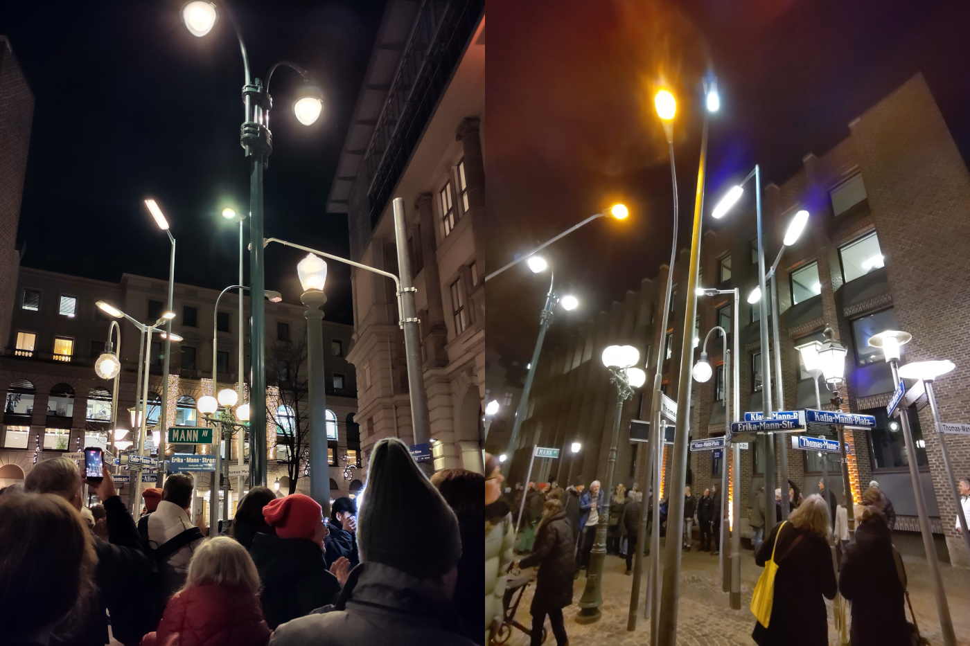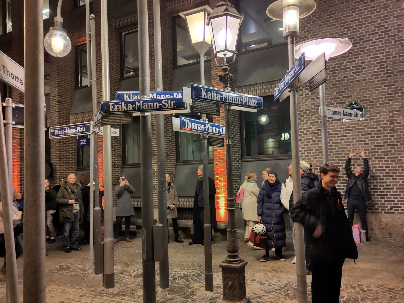 Gestern war ich bei der Eröffnung eines Denkmals am Münchner Salvatorplatz, und zwar Straßen Namen Leuchten. Das Denkmal erinnert an die Familie Mann, die achtzehn Jahe, glaube ich, in München gelebt hat und mit dem Aufkommen der Nazis in Exil musste – in die USA, Brasilien, der Schweiz, Italien, den Niederlanden, mindestens.