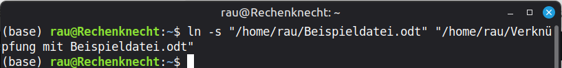 ln -s "/home/rau/Beispieldatei.odt" "/home/rau/Verknüpfung mit Beispieldatei.odt"