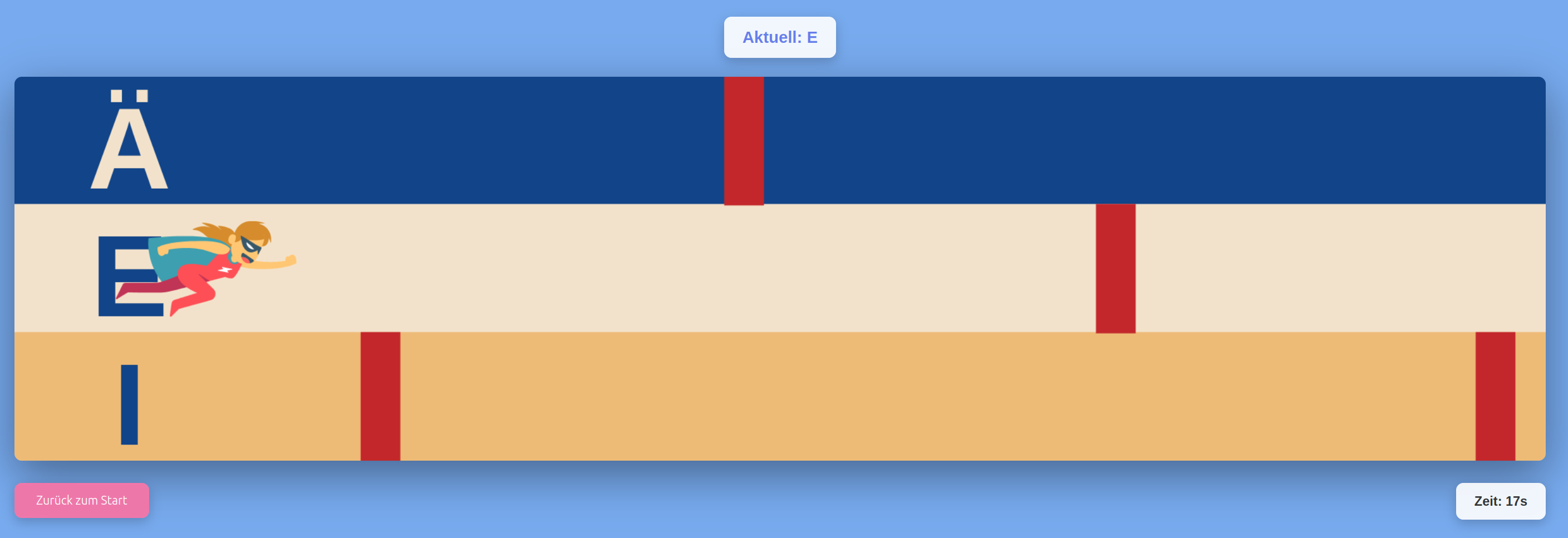 Man kann dabei verschiedene Spiele wählen, hier geht es um die unterschiedliche Aussprache von ä, e und i, die man mit dem Mikrofon richtig treffen muss.
