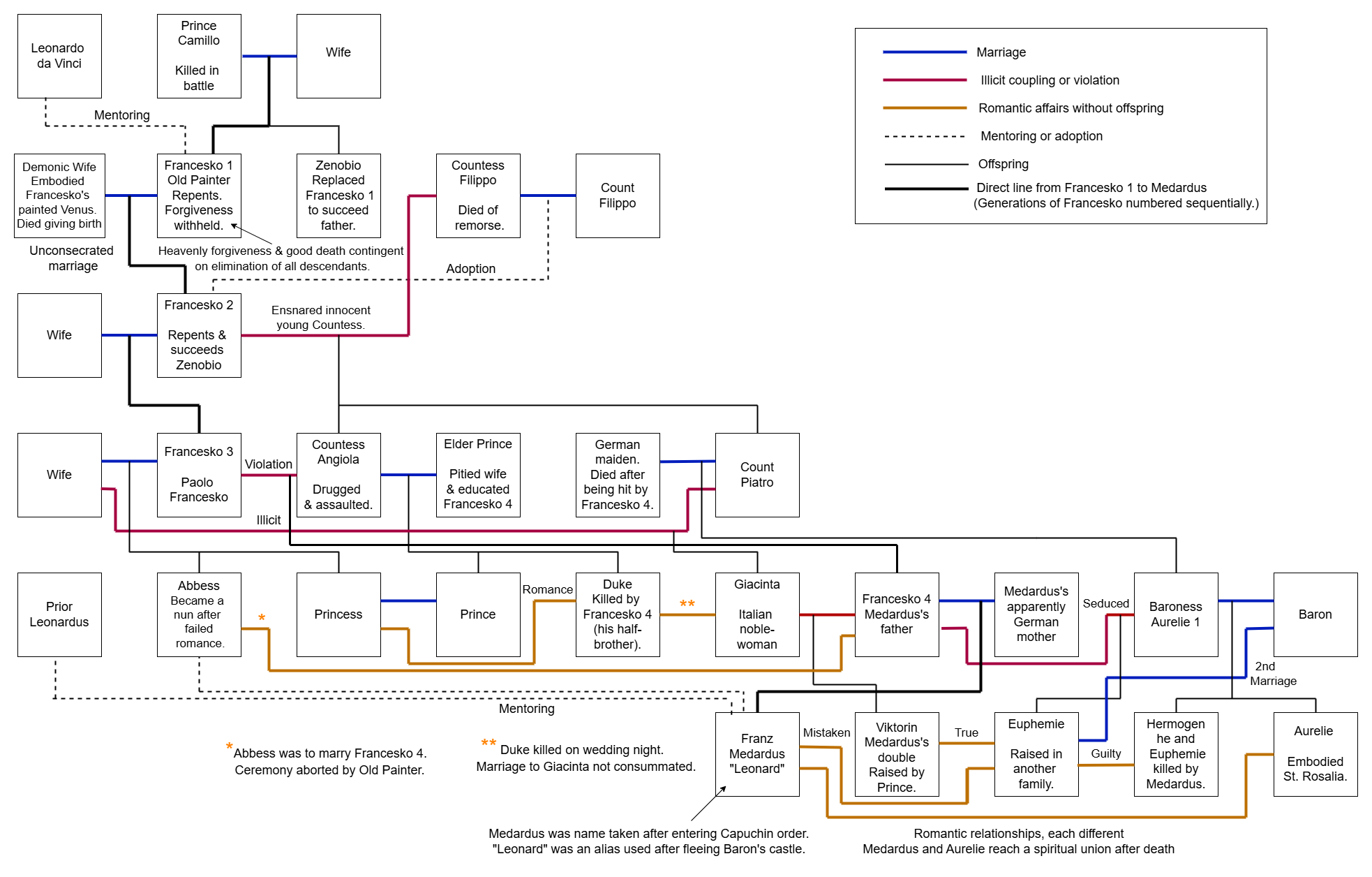 Notropis procne, Francesko Family Tree & Relationships – Devils Elixirs by E.T.A. Hoffmann.drawio, CC0 1.0